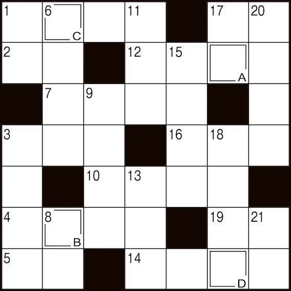 二重マスの文字をA〜Dの順に並べてできる言葉は何でしょうか?(出題:ニコリ)